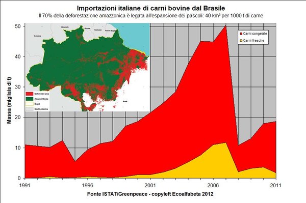(2) Secondo Greenpeace, tra il 1996 e il 2006 l’area a pascolo è cresciuta di 320 mila km², su cui si sono installati 26 milioni di capi