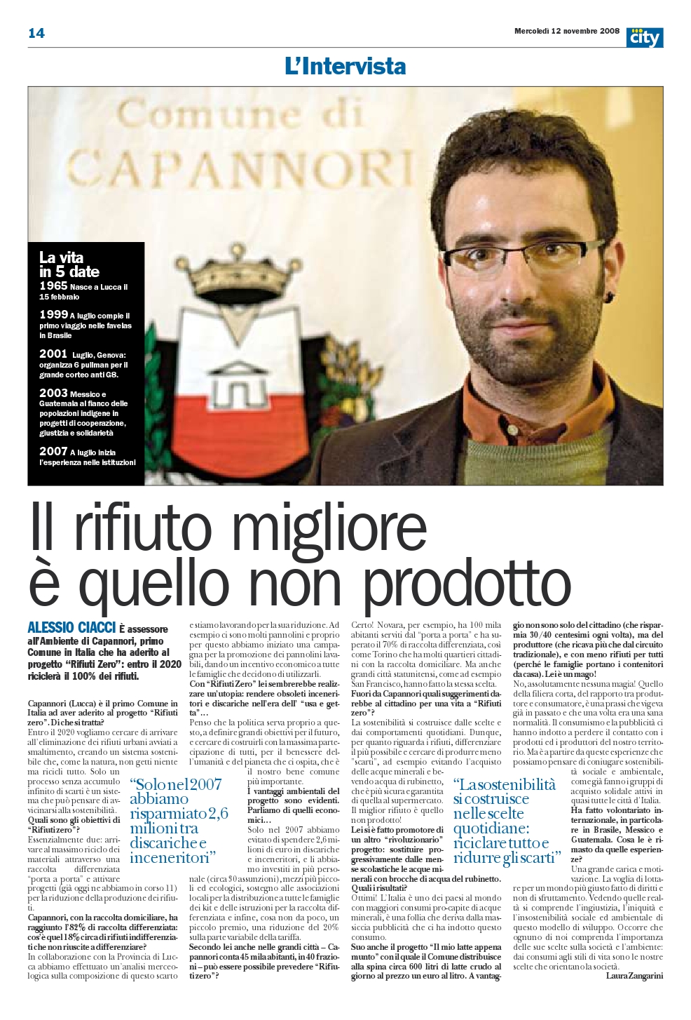 Alessio Ciacci è assessore all’Ambiente di Capannori, primo Comune in Italia che ha aderito al progetto “Rifiuti Zero”: entro il 2020 riciclerà il 100% dei rifiuti.