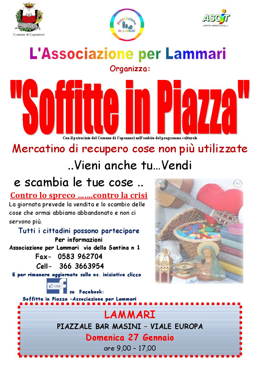Chi vuole rimanere informato sulle ns. iniziative può seguirci cliccando Mi piace sulla ns. pagina facebook: http://www.facebook.com/pages/Soffitte-in-Piazza-Associazione-per-Lammari/247588565294592