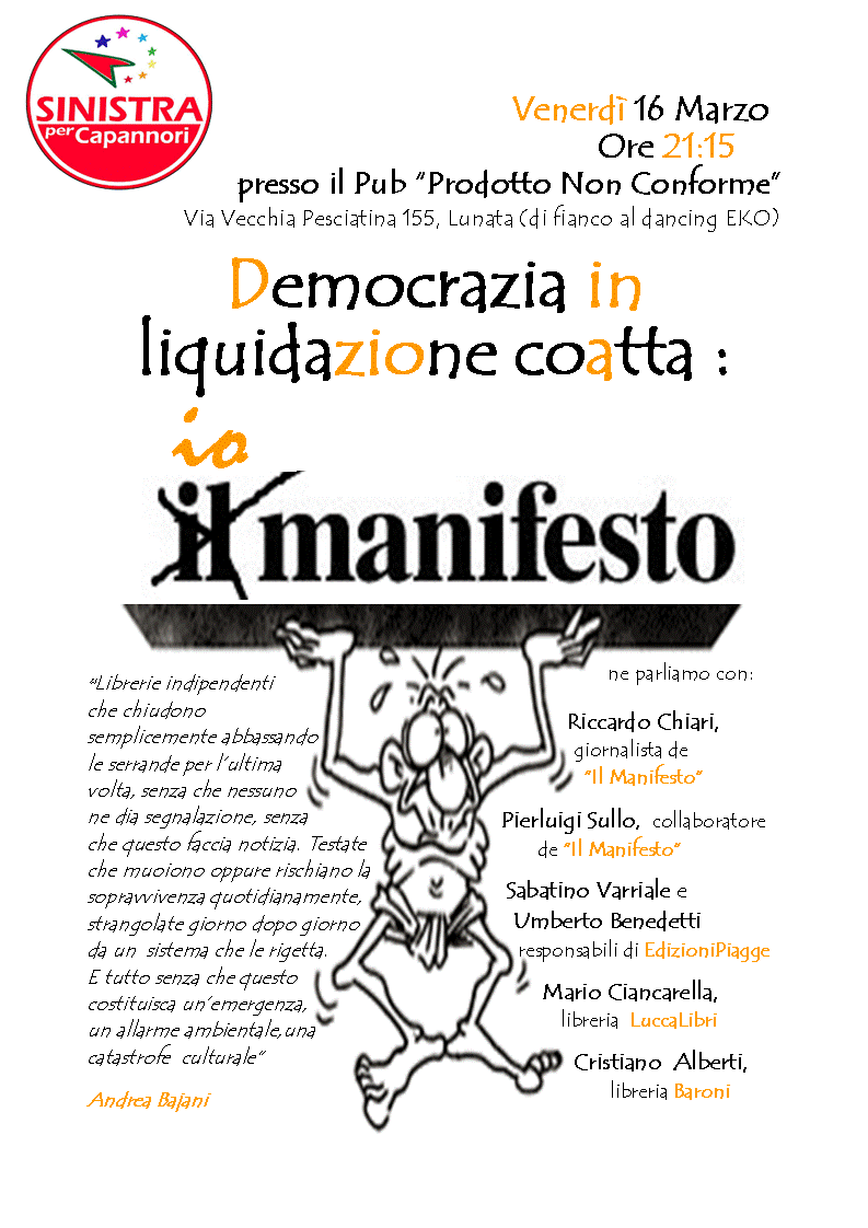 Sinistra per Capannori organizza un’iniziativa a sostegno de “Il Manifesto” e della piccola editoria locale.