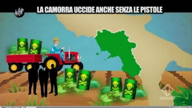 Le discariche per mano della Camorra. “Non c’è una discarica della Campania che non sia rimpinzata al 50% di rifiuti tossici – Antonio Marfella Istituto Tumori Pascale di Napoli – Nell’agenda libro paga del capo clan dei Casalesi Zagaria c’era l’elenco di tutti i custodi delle discariche della Campania” che venivano corrotti per consentire lo sversamento indisturbato di rifiuti da parte della camorra. I rifiuti sono provenienti dalle industrie del nord Italia, come il caso dei fanghi tossici di Porto Marghera, ritrovati a Castel Volturno, o peggio ancora le 300 mila tonnellate di pcb (polidoro bifenili) della Caffaro di Brescia che, così come confessato dal pentito Zagaria nel luglio 2008, sono stati smaltiti nei terreni agricoli ancora oggi coltivati nelle terre di Caivano e Acerra.