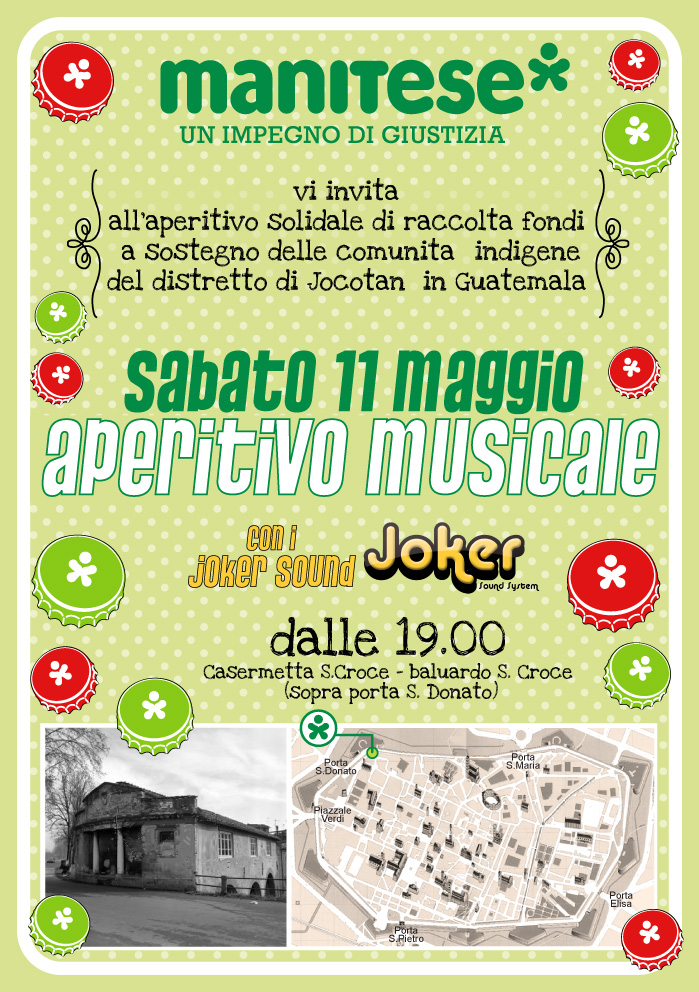Manitese vi aspetta SABATO 11 MAGGIO all’Aperitivo SOLIDALE!! A sostegno delle comunità indigene del distretto di Jocotàn in Guatemala http://www.manitese.it/progetti/?p=1496 mi raccomando pubblicizzatelo e invitate tutti i vostri amici!! Vi aspettiamo dalle 19!!!