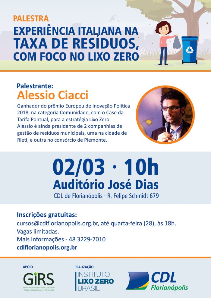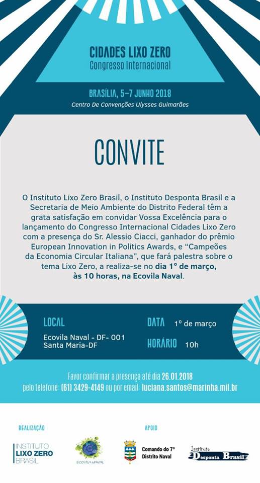 Dal 26 Febbraio al 3 Marzo Ciacci prenderà parte a 7 appuntamenti convegnistici che saranno incentrati sull’approfondimento delle migliori esperienze italiane di raccolta differenziata e riciclo, su invito del movimento internazionale rifiuti zero, dell’Università brasiliana, della Camera di Commercio e del Parlamento.