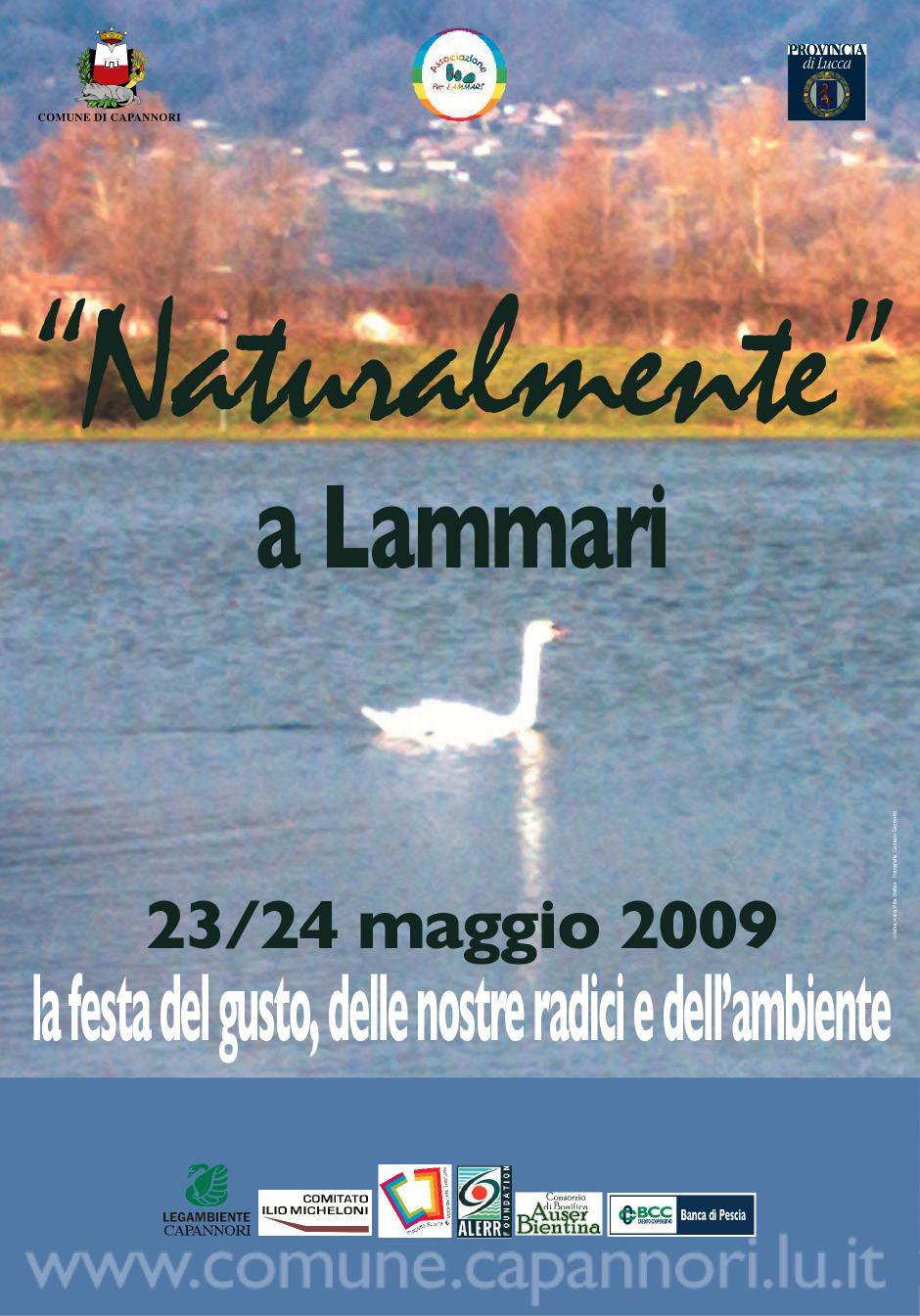 Sarà una ‘due giorni’ interamente dedicata alle buone pratiche ambientali e alla riscoperta delle cose naturali quella che si svolgerà il prossimo fine settimana a Lammari. “Naturalmente 2009”, questo il titolo della manifestazione promossa da Legambiente Capannori, associazione ‘Per Lammari’, Comitato Ilio Micheloni in collaborazione con il Comune e la Provincia di Lucca si svolgerà sabato 23 e domenica 24 maggio. Tante gli eventi in programma, dal mercato contadino, alle mostre, dalle degustazioni di prodotti locali, a spettacoli e concerti.