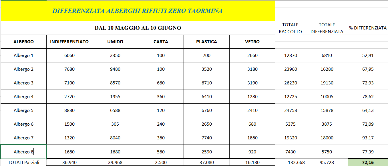 Tale percorso è stato intrapreso a partire dalla delibera di gennaio 2014, votata all’unanimità dal Consiglio Comunale per adottare la strategia rifiuti zero. Le incombenze del Comune dovute alla normativa regionale hanno dato un rallentamento al percorso iniziato nei primi mesi dell’anno ma per non perdere il cammino intrapreso e per rodare il nuovo servizio, Messinambiente ha avviato a partire dal 30 marzo il porta a porta in 9 alberghi del centro di Taormina, che da soli comprendono il 25% dei posti letto del centro.